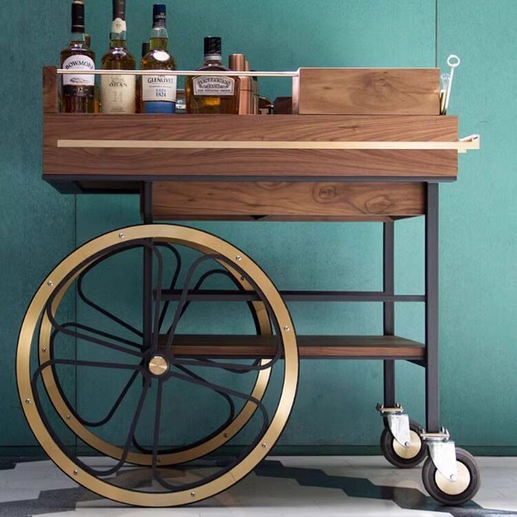 This American retro style mobile storage cart combines functionality and artistic design with its metal lines. It offers a stylish and practical storage solution for various spaces.