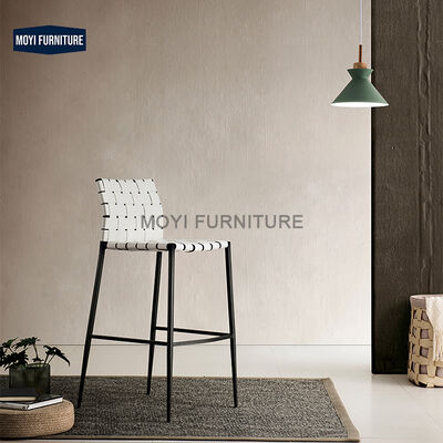 Durable MOYI Nordic Design Stainless Steel Bar Chair High Backrest Woven Rope Dining Chair Modern Style Home Furniture 1