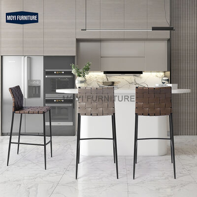 Durable MOYI Nordic Design Stainless Steel Bar Chair High Backrest Woven Rope Dining Chair Modern Style Home Furniture