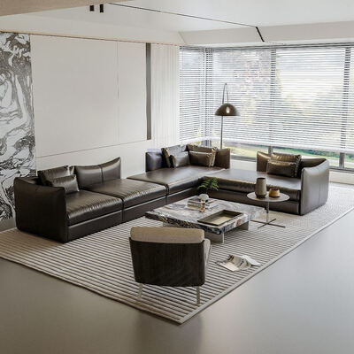 Modular Modern Italian Minimalist Black Leather Sofa Head Layer Cowhide Large Flat Layer Straight Row Corner Down Sofa 5