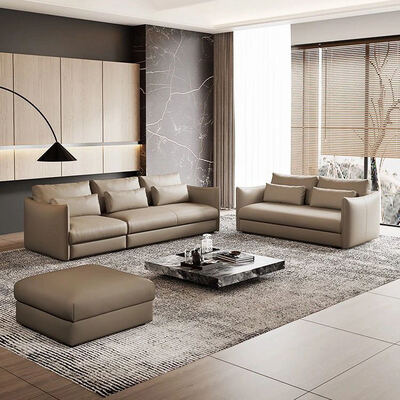 Modular Modern Italian Minimalist Black Leather Sofa Head Layer Cowhide Large Flat Layer Straight Row Corner Down Sofa 1
