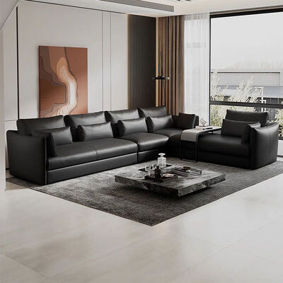 Modular Modern Italian Minimalist Black Leather Sofa Head Layer Cowhide Large Flat Layer Straight Row Corner Down Sofa