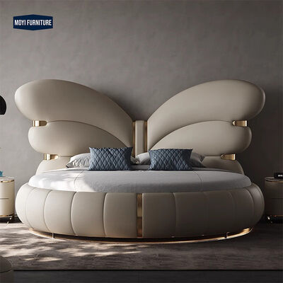 King Size Modern Design Bedroom Furniture Featuring Butterfly Headboard Soft Leather Upholstered Bed Stainless Steel Base