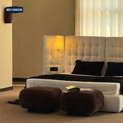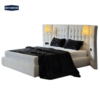 Mail Packing Y King Queen Size Solid Wood Leather Upholstered Bed Frame with Lighting and High Density High Resilience Foam