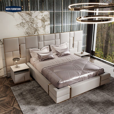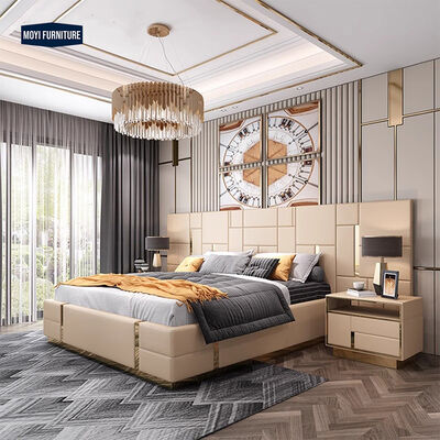 Mail Packing Soft Bed Luxe Leather Back Super Kingsize Frame Leather Bed 1.8 m Double Sample Design Bedroom Suite Set Furniture King Size Bed 2