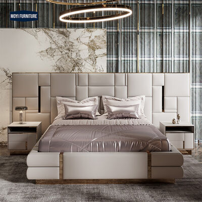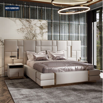 Mail Packing Soft Bed Luxe Leather Back Super Kingsize Frame Leather Bed 1.8 m Double Sample Design Bedroom Suite Set Furniture King Size Bed