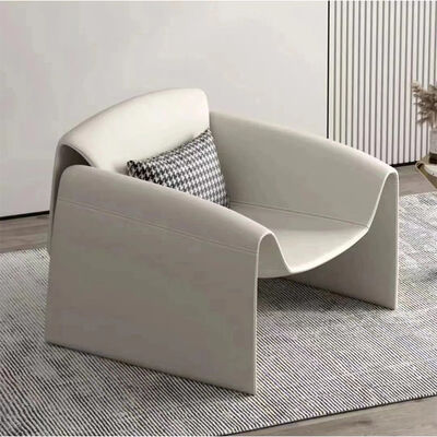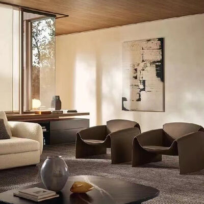 Leather Wood Metal Comfortable Leisure Chair Modern Minimalist Art Living Room Balcony Lounge Chair Nordic Light Luxury Designer