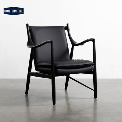 Home Furniture Modern Nordic Wabi Sabi Style Solid Wood Lounge Chair Soft Padded Leather Backrest Light Luxury Chaise Lounge 24