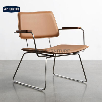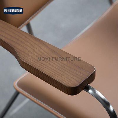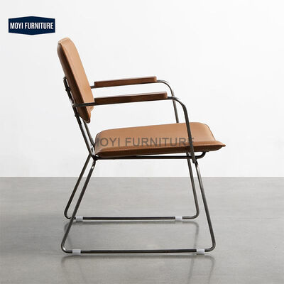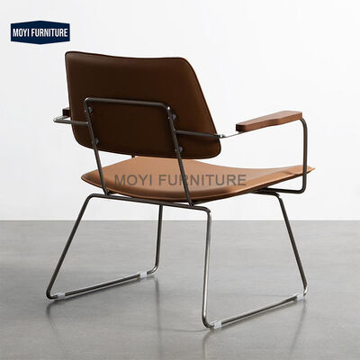 Tilting No Nordic Dining Furniture Modern Brown Leather Chairs Metal Chair for Events Sitting Room Leather Arm Accent 5