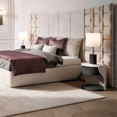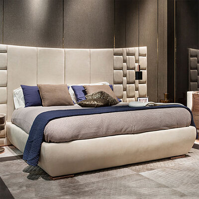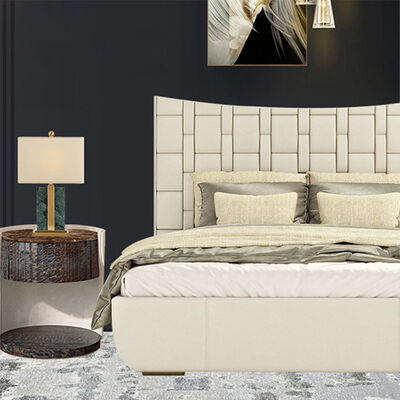 Luxury Bedroom Furniture King Size Sleeping Bed Villa House Bed Room Headboard Modern Genuine Leather Up-holstered Beds