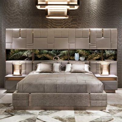 King Size Bed Frame Lux Leather Modern Double Bedroom King Size Bed Set Luxury 6