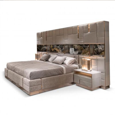 King Size Bed Frame Lux Leather Modern Double Bedroom King Size Bed Set Luxury 2