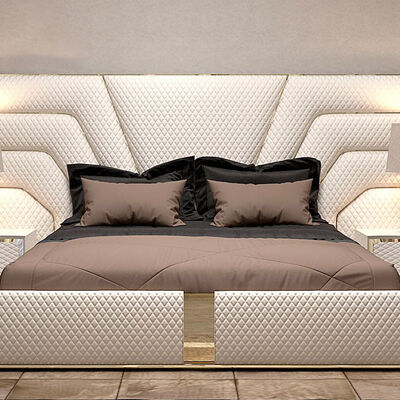 Opulent Upholstered Bed: Quilted Pattern & Gold Trims for Luxe Bedrooms 2