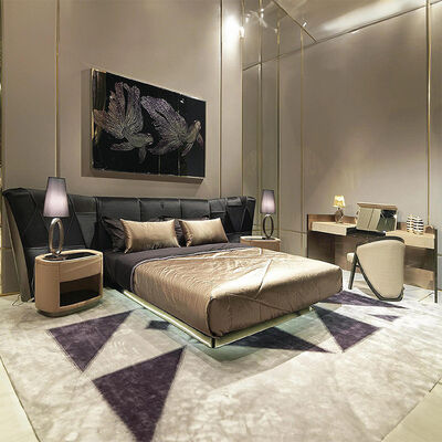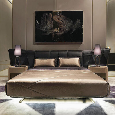 Luxury Modern Italian 1.8*2 Custom Size Queen King Double Bed Up-Holstered with Metal Frame Fabric Leather for Villa Home House