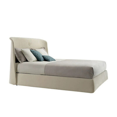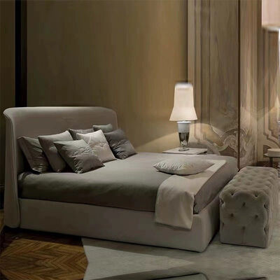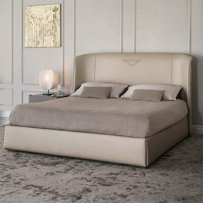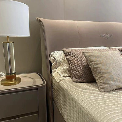Luxury Beige Genuine Leather king Size Bed Headboard Double Bed Set with Sturdy Frame Modern Design for Villa Bedroom Furniture