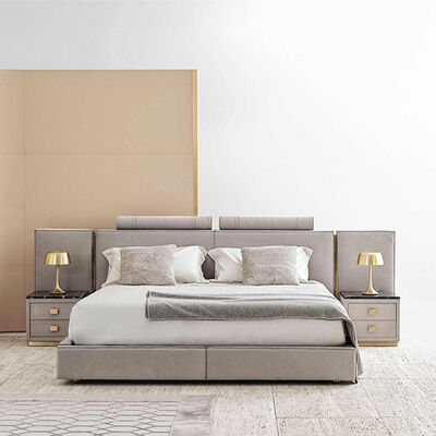 Factory Custom Luxury Modern Full Grey Bed Room Wooden Frame Furnitures Bedroom Set
