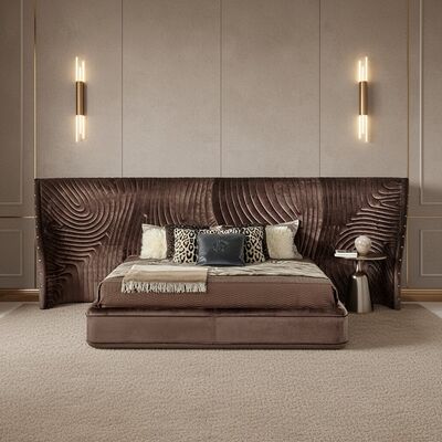 Latest Design Bedroom Furniture Big Headboard Velvet Fabric Bed Unique Shape Modern Luxury Double Bed with Storage Bedroom Set 0