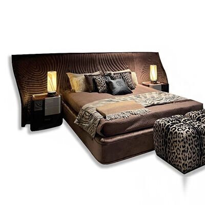 Latest Design Bedroom Furniture Big Headboard Velvet Fabric Bed Unique Shape Modern Luxury Double Bed with Storage Bedroom Set