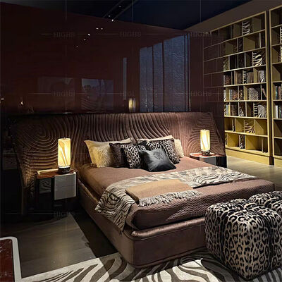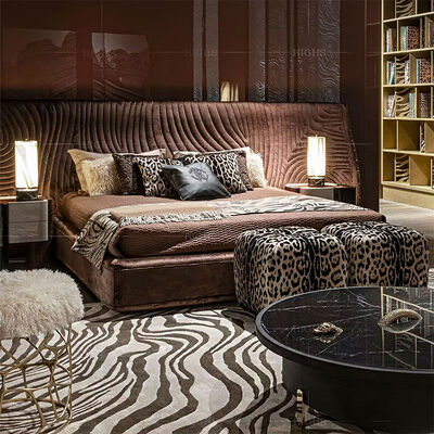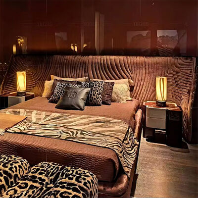 Latest Design Bedroom Furniture Big Headboard Velvet Fabric Bed Unique Shape Modern Luxury Double Bed with Storage Bedroom Set 12