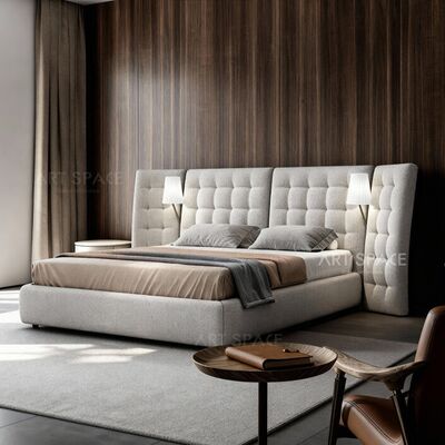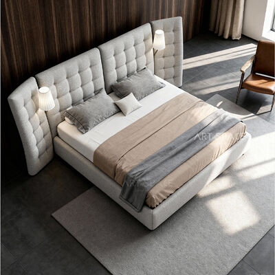 Italian Minimalist Wide-screen High-back French Wabi-sabi Style Fabric Upholstered Angel Bed 20