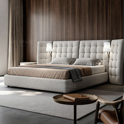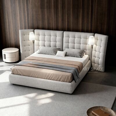 Italian Minimalist Wide-screen High-back French Wabi-sabi Style Fabric Upholstered Angel Bed