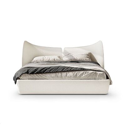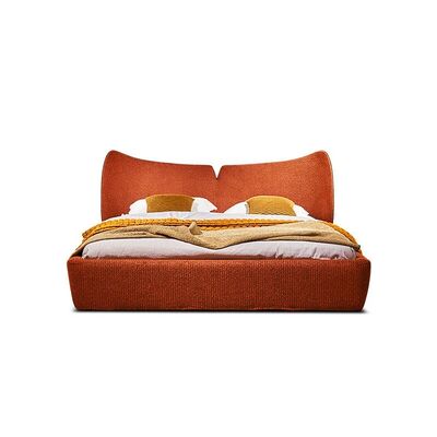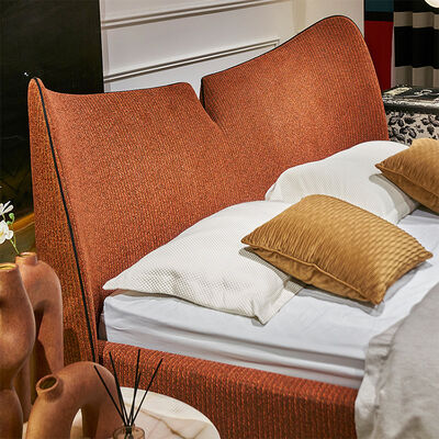 Modern Luxury Velvet Upholstered Bed with Warm Orange Headboard Stylish Bed for Bedroom Hotel Resort