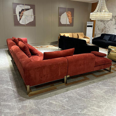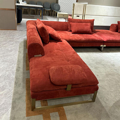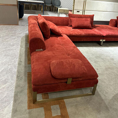 red fabric sofa with metal legs