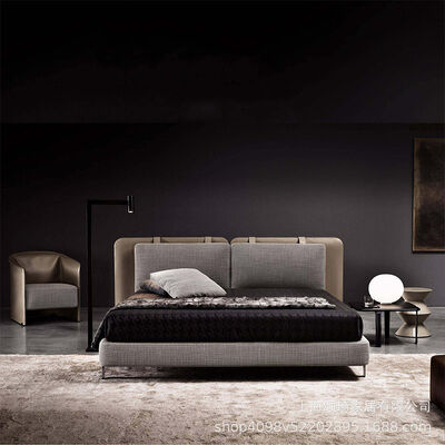 GEDO Modern Luxury Bedroom Furniture Bedroom Set King Size Solid Wood Genuine Leather Bed 2
