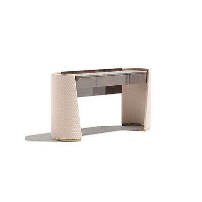 MOYI Luxury Dressing Table Stainless Steel Makeup Table Bedroom Furniture Storage Microfiber Leather Embroidery With Mirror