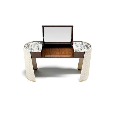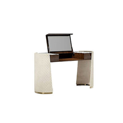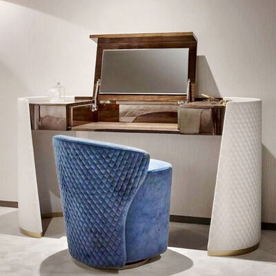 MOYI Luxury Dressing Table Stainless Steel Makeup Table Bedroom Furniture Storage Microfiber Leather Embroidery With Mirror 0